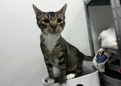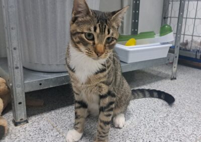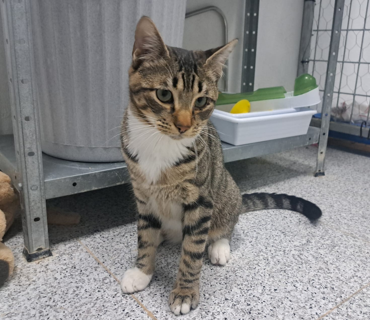 Soy muy sociable y me llevo genial con otros gatos, así que puedo ser hijo único o incluso un buen hermano si ya tienes otros animales en casa. Si me das la oportunidad, te prometo que haré que cada día sea divertido y lleno de amor. ¿Me echas una pata y me dejas ser parte de tu familia?