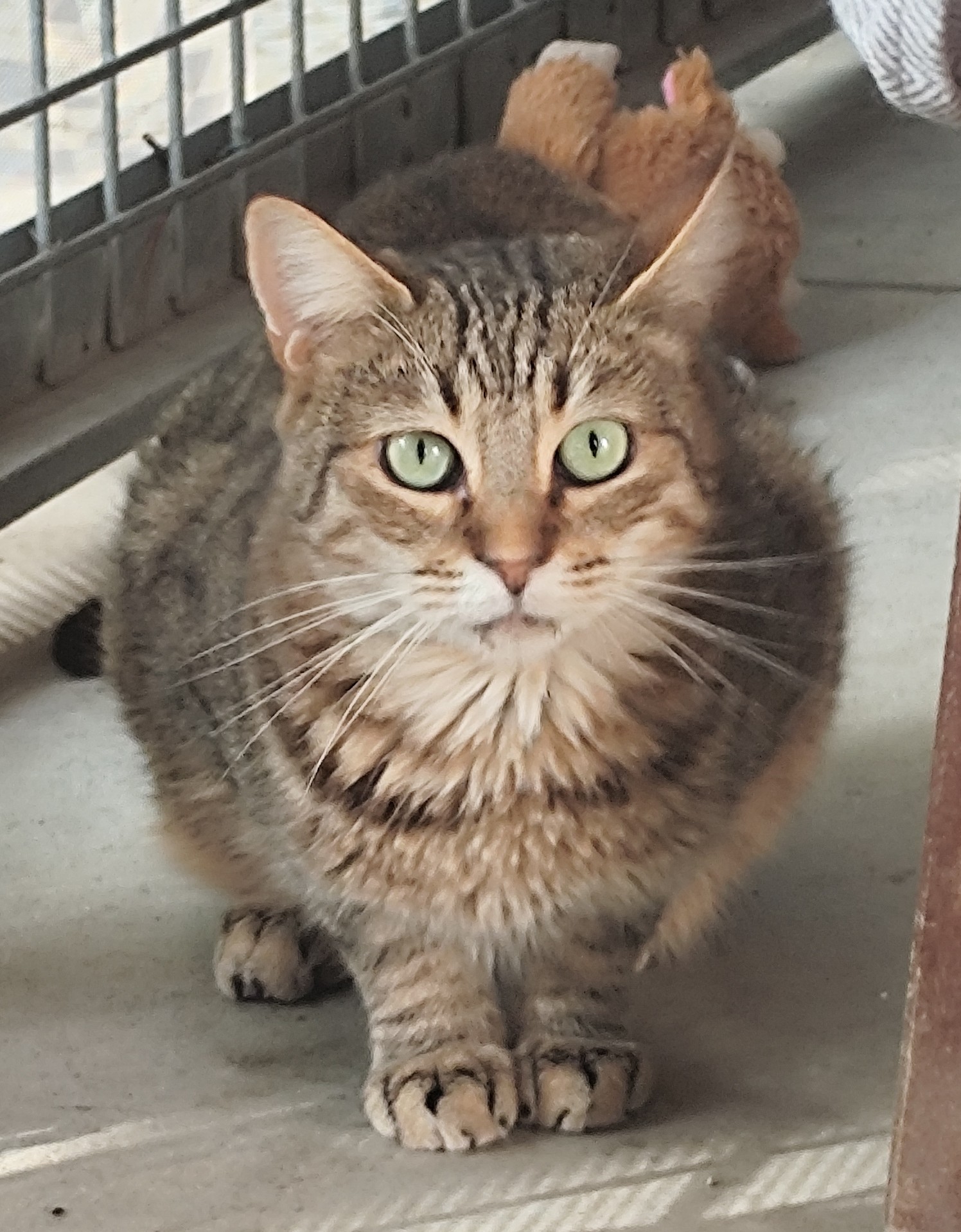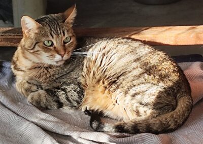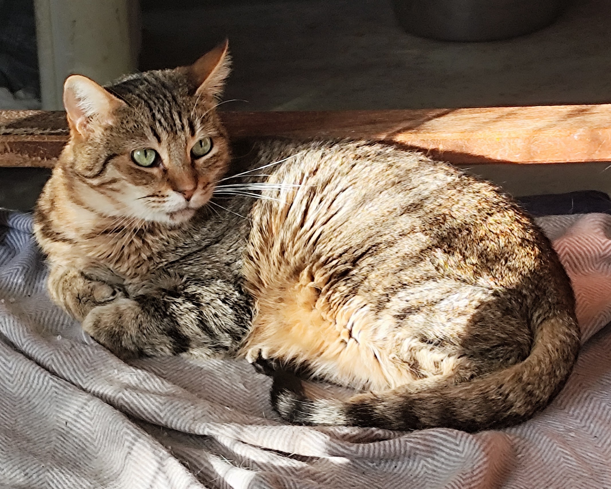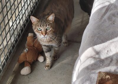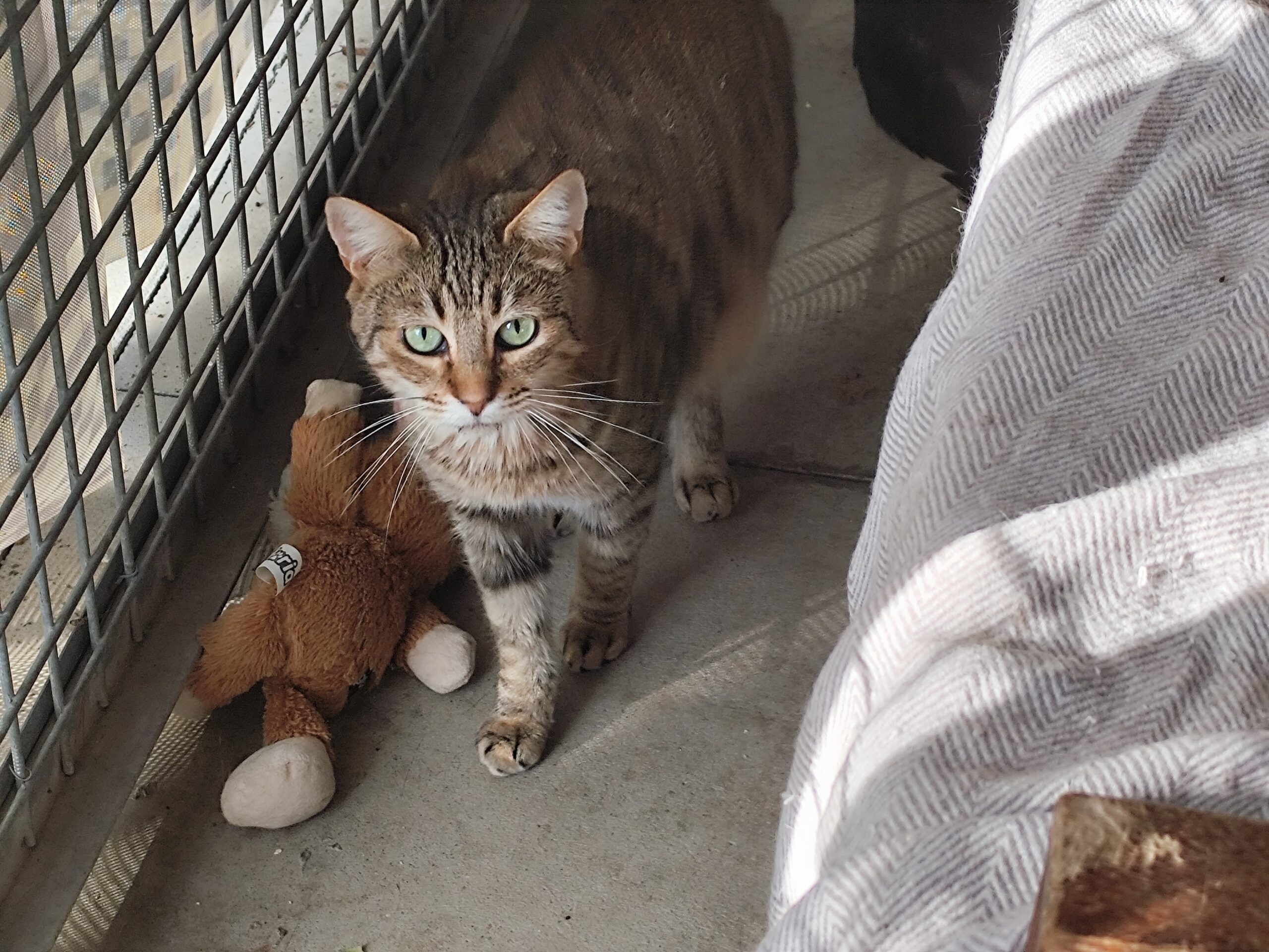 ¡Hola! Me llamo Calma y soy una preciosa gata atigrada. Fui rescatada cuando tenía solo un mes, después de ser abandonada en la calle. Desde entonces vivo en el CIMPA, esperando encontrar una familia que me quiera.