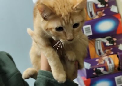 ¡Hola! Soy Dalaila, una gata dulce de pelaje naranja. Soy un poco tímida, y me encanta disfrutar de la tranquilidad. Pero, cuando me siento cómoda, también soy muy juguetona y me gusta socializar con otros gatos.