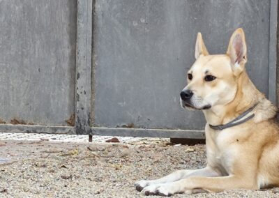 Iuna es una perra mestiza que se lleva bien con las personas, aunque es un poco miedosa. Necesita un hogar tranquilo donde pueda sentirse segura y disfrutar de una vida feliz. Con tiempo y paciencia, Iuna podrá confiar y mostrar su lado más cariñoso.