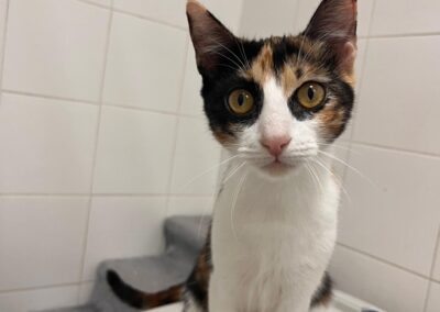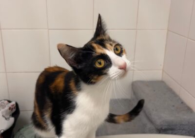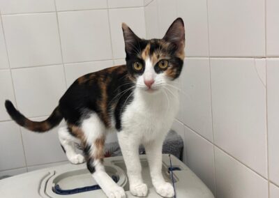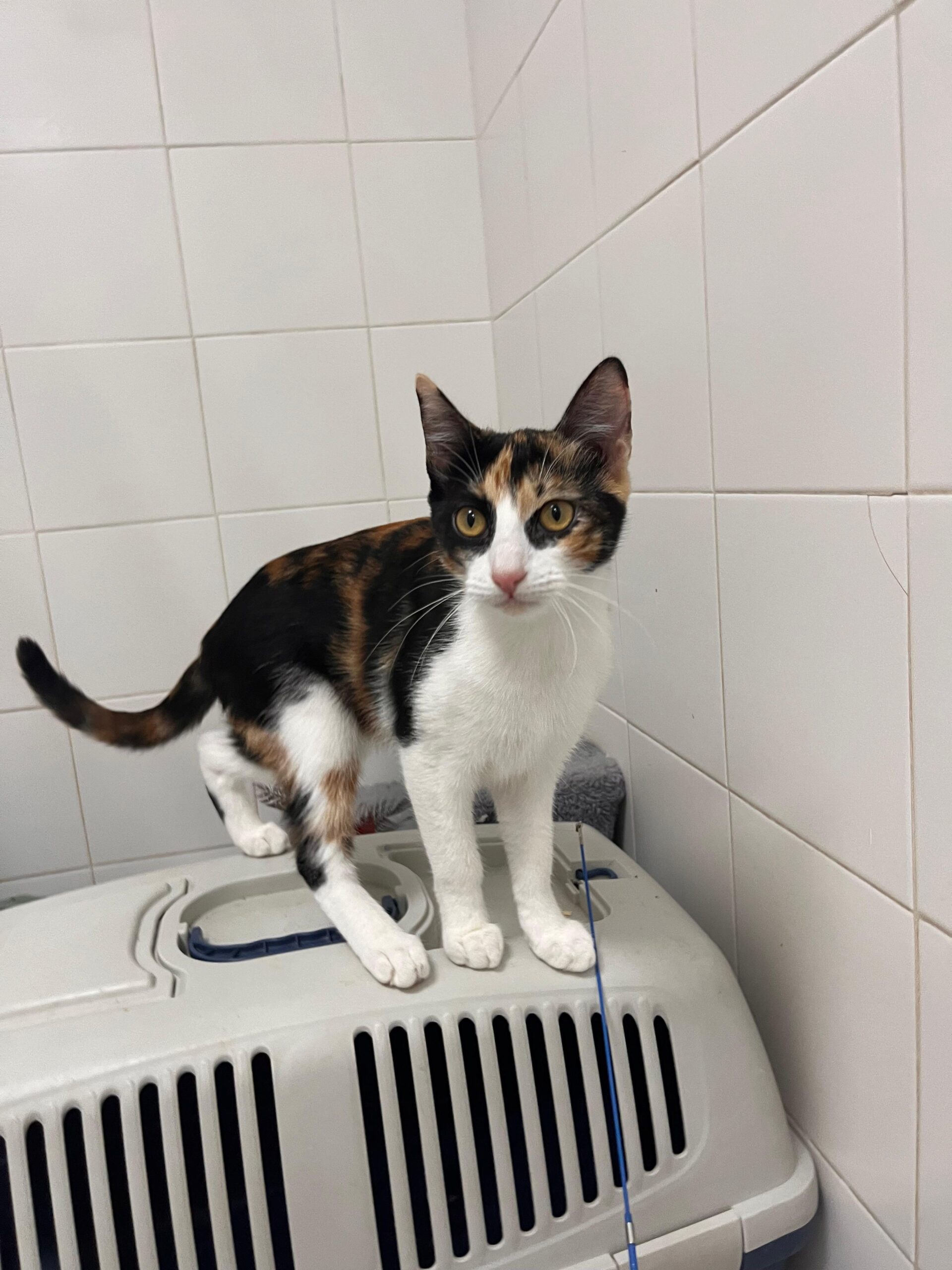 ¡Hola! Me llamo Jaiko, y soy una gata tricolor con mucha energía. Llegué a la protectora junto con mis hermanos (Nobita, Sisuka y Suneo) y nos llevamos de maravilla. Mi sueño ahora es encontrar a esa persona especial con quien compartir mi vida. Me encanta explorar, correr y, sobre todo, ¡jugar! Los juegos de caza son mis favoritos.
