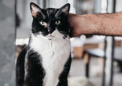 Cuando nos encontramos a Koni en el parque estaba con mucho miedo, no se movía. Estaba escondido en unos matorrales, no obstante, él mismo se metió en el trasportín para que pudiéramos curarlo. Estaba esterilizado, pero no tenía chip. Hicimos varias difusiones intentando encontrar a su humano, pero no hubo suerte.