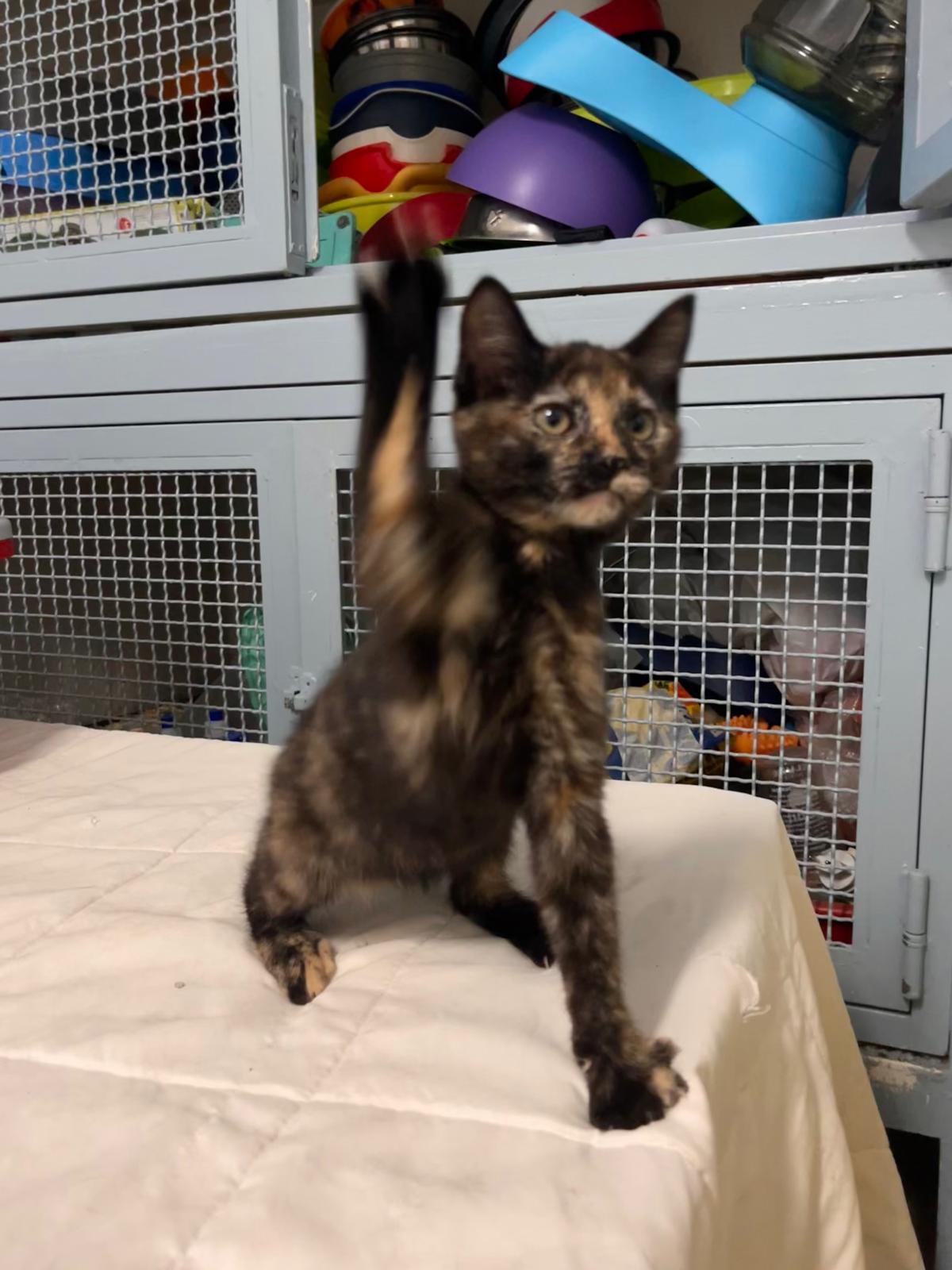 Mamasita es una gata carey que llegó a la protectora con su hermano Bandu, ambos atrapados en el motor de un coche. Aunque su comienzo fue difícil, Mamasita es una gatita dulce y agradecida que busca un hogar donde pueda recibir el amor que tanto necesita. Le encanta acurrucarse en mantas suaves y mirar por la ventana. ¿Te animas a darle la oportunidad que merece?