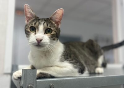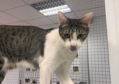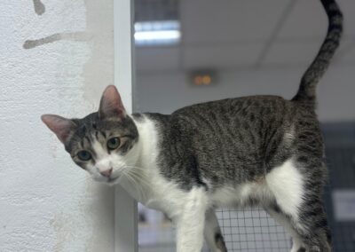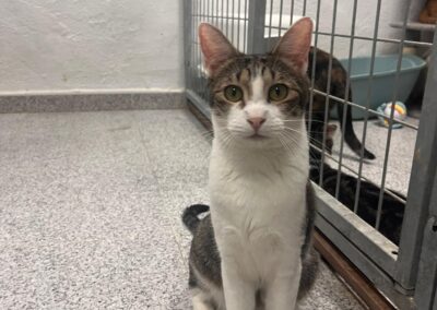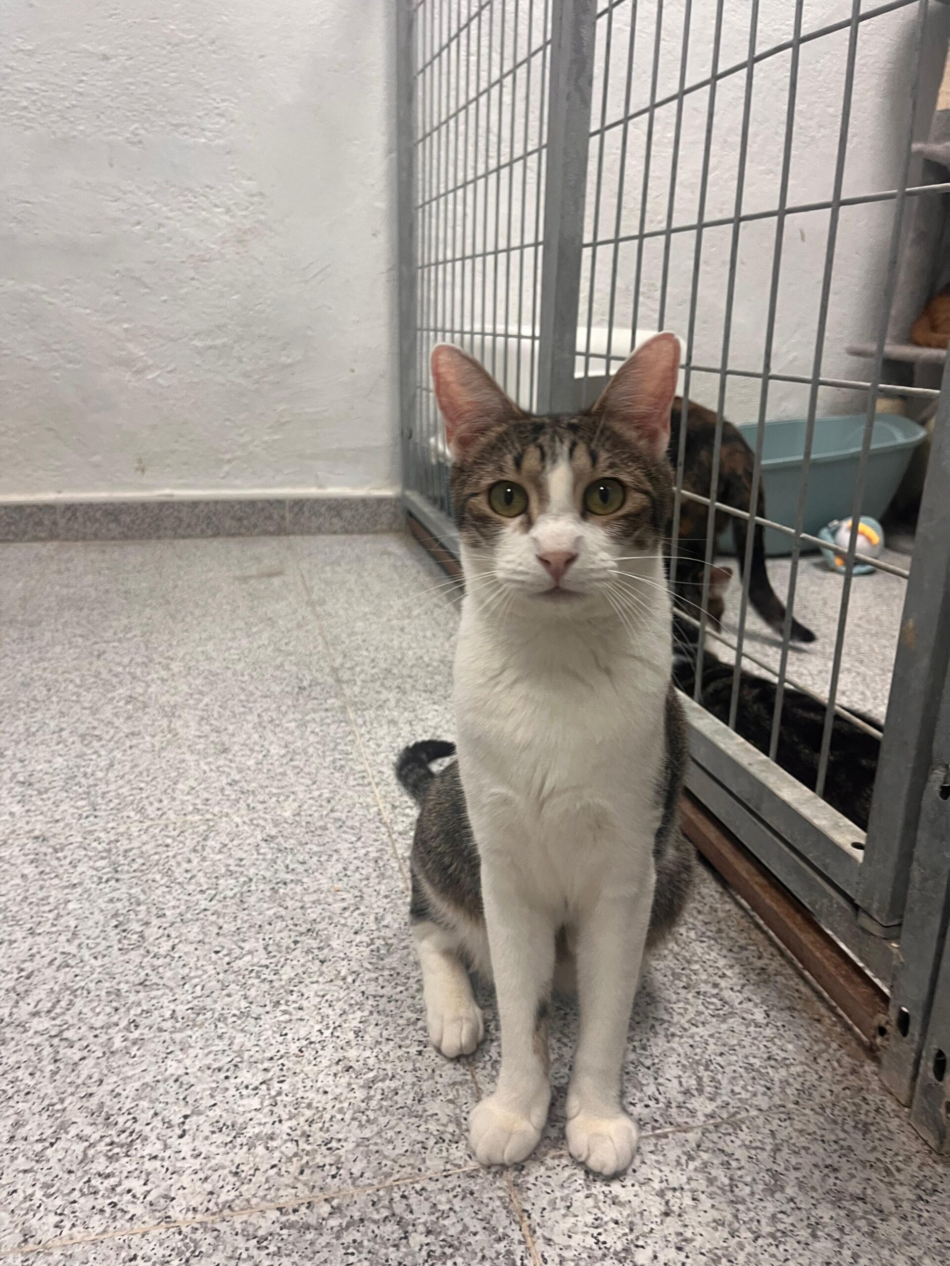 Nela llegó a la protectora (junto a su hermano Pimpi) un poco malita, pero con el tiempo se ha recuperado completamente. Ahora es una gata muy sociable y cariñosa, siempre dispuesta a conocer gente nueva y disfrutar de su compañía. Tiene un carácter dulce y se siente cómoda en un entorno tranquilo donde pueda recibir atención y amor. Le gusta explorar su entorno y disfrutar de momentos de calma.