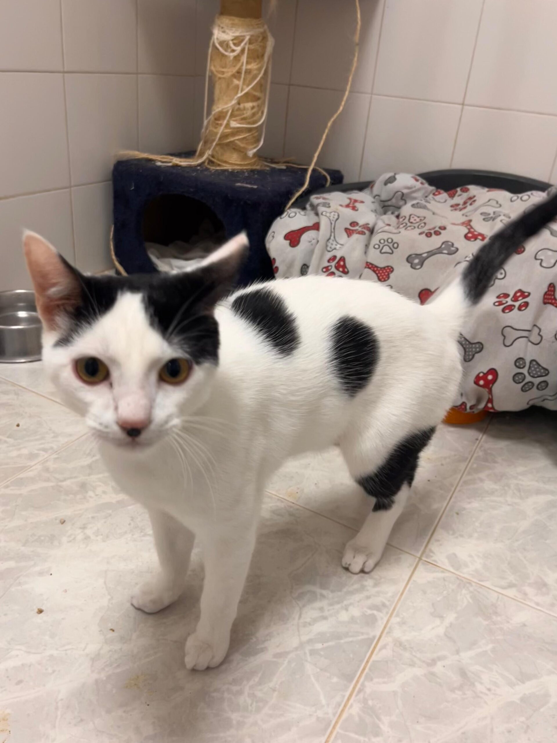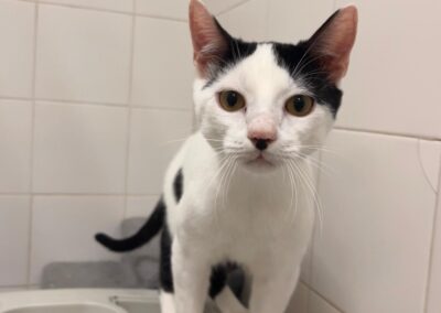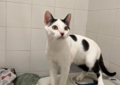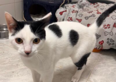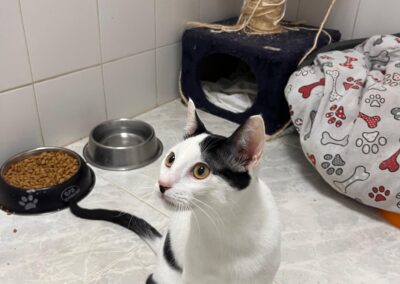 Soy muy pero que muy sociable. Ya sea con otros gatos o personas, siempre estoy dispuesto a saludar con mi mejor cara y actitud. Disfruto de pasar mi tiempo con los voluntarios, que me acaricien y, por supuesto, jugar. Si decides adoptarme, ¡serás mi mundo! Tengo todo el amor del universo para dar.