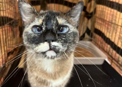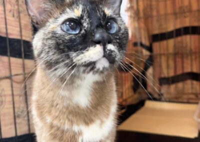 Hola! Soy Pandora, me tuvieron que rescatar después de ser abandonada. Mis cuidadores dicen que soy una gata buenísima, además de guapa. Has visto mis ojos bizcos? Me hacen tan especial! Vivo en la protectora en un espacio muy pequeño y eso me hace muy triste. Necesito una familia que quiera para siempre, quiero jugar, oler, descubrir. Me ayudas?
