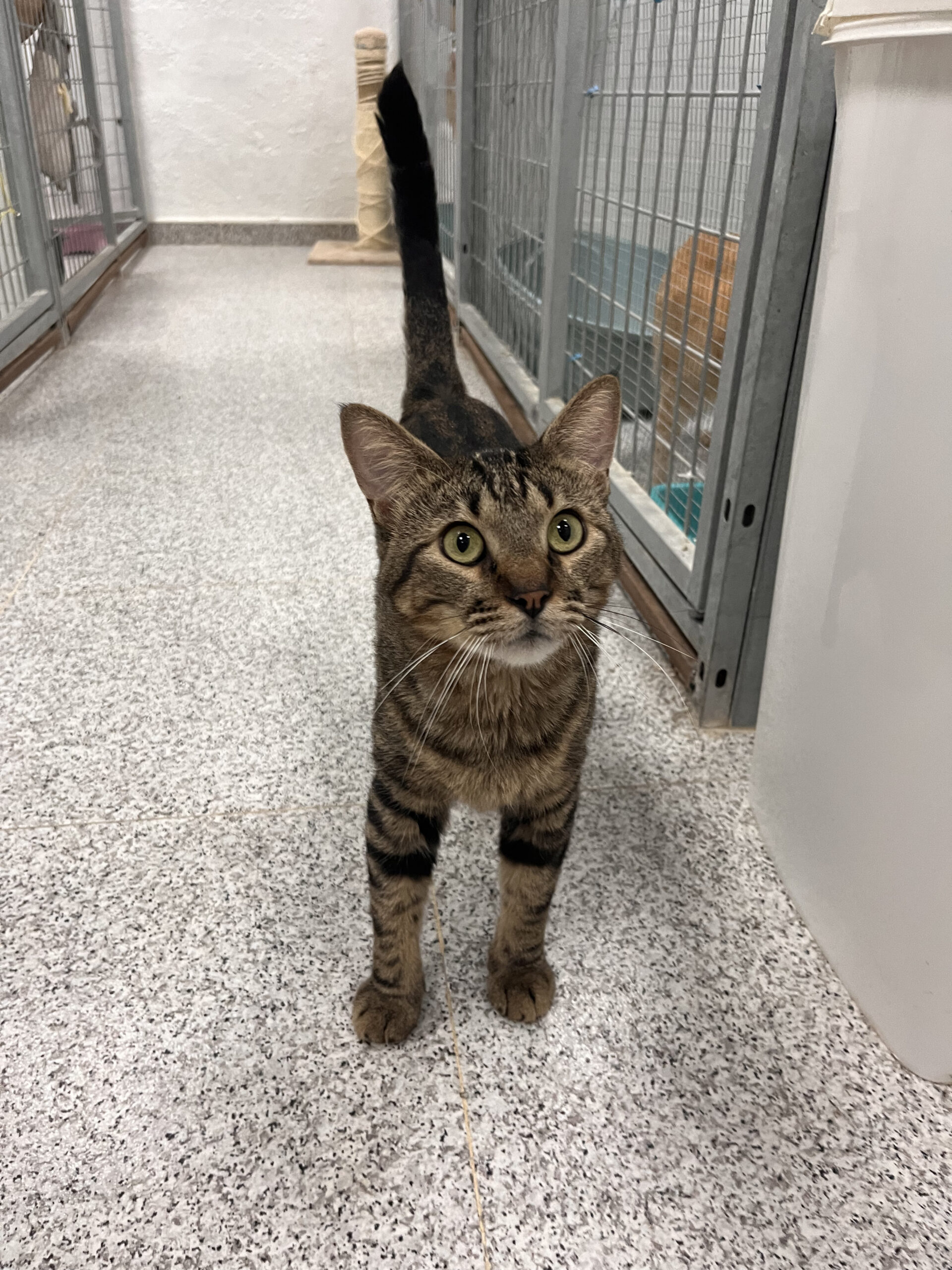 Este es Pelines, un gato atigrado que, lamentablemente, fue abandonado en la calle por su propia familia. A pesar de su pasado, Pelines sigue siendo un gato lleno de amor y cariño para dar. Aunque es un gato mayor, tiene una energía tranquila y una dulzura que no dejan indiferente a nadie.