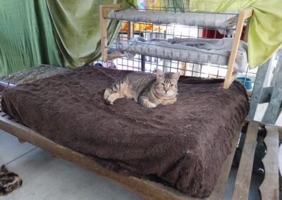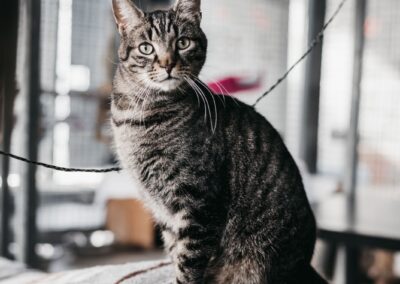 Rugby no es el tipo de gato que salta a tus brazos en cuanto te ve pero, una vez que se siente cómodo y seguro, ¡es pura ternura! Con un poco de paciencia, algunas golosinas y muchos mimos, Rugby se convierte en un compañero dulce y cariñoso. Su carácter tranquilo lo hace perfecto para aquellos que buscan un gato más reservado y relajado, pero sin renunciar a la conexión profunda y especial que se crea cuando un gato confía en ti.