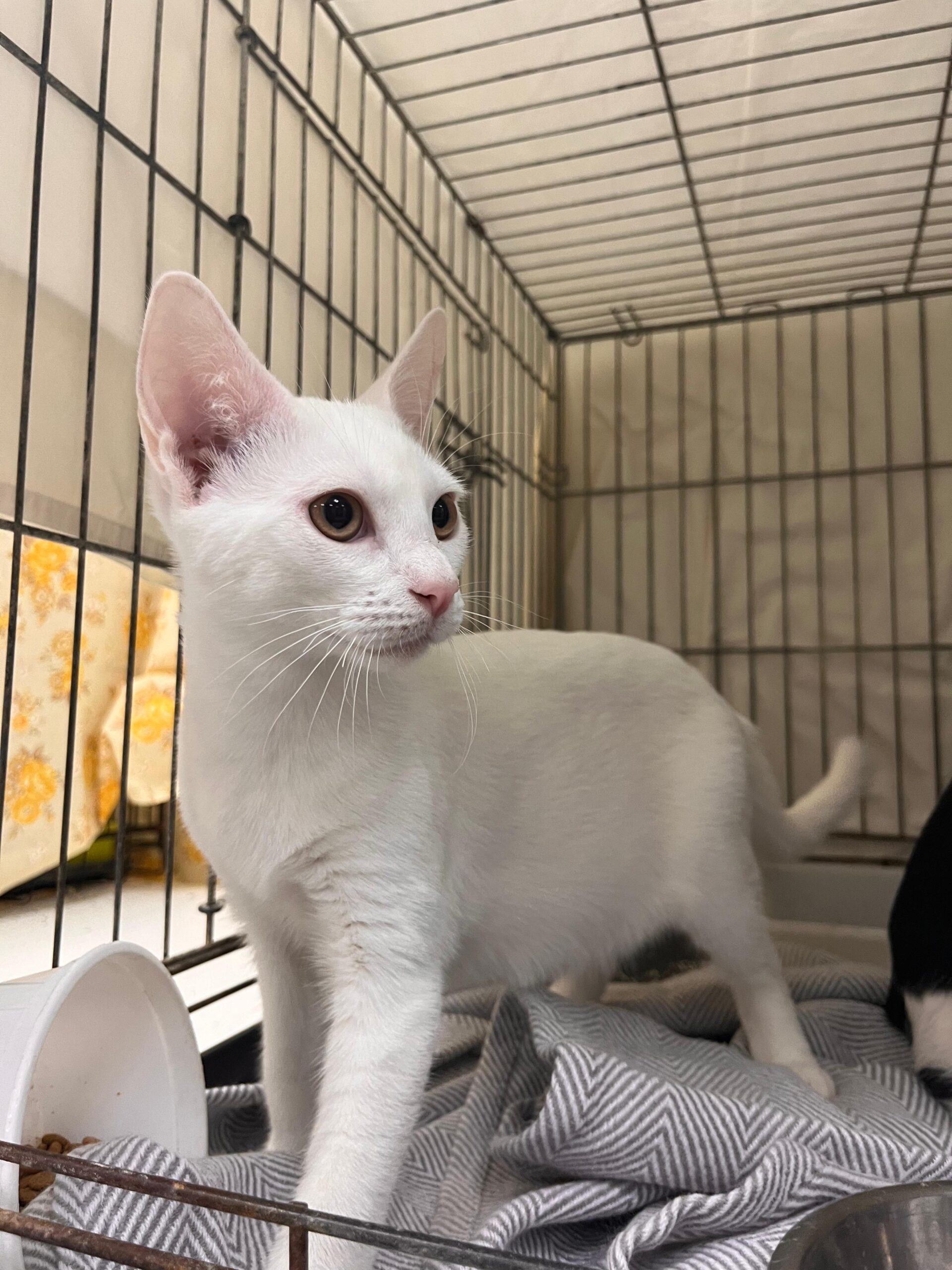 Timo es un precioso gato blanco que llegó a la protectora tras ser abandonado. Es un joven gatito muy sociable y cariñoso, que disfruta de la compañía humana y siempre está listo para jugar y recibir mimos. Su belleza y personalidad encantadora lo convierten en el compañero ideal para cualquier familia. ¿Te gustaría que Timo formara parte de tu familia?