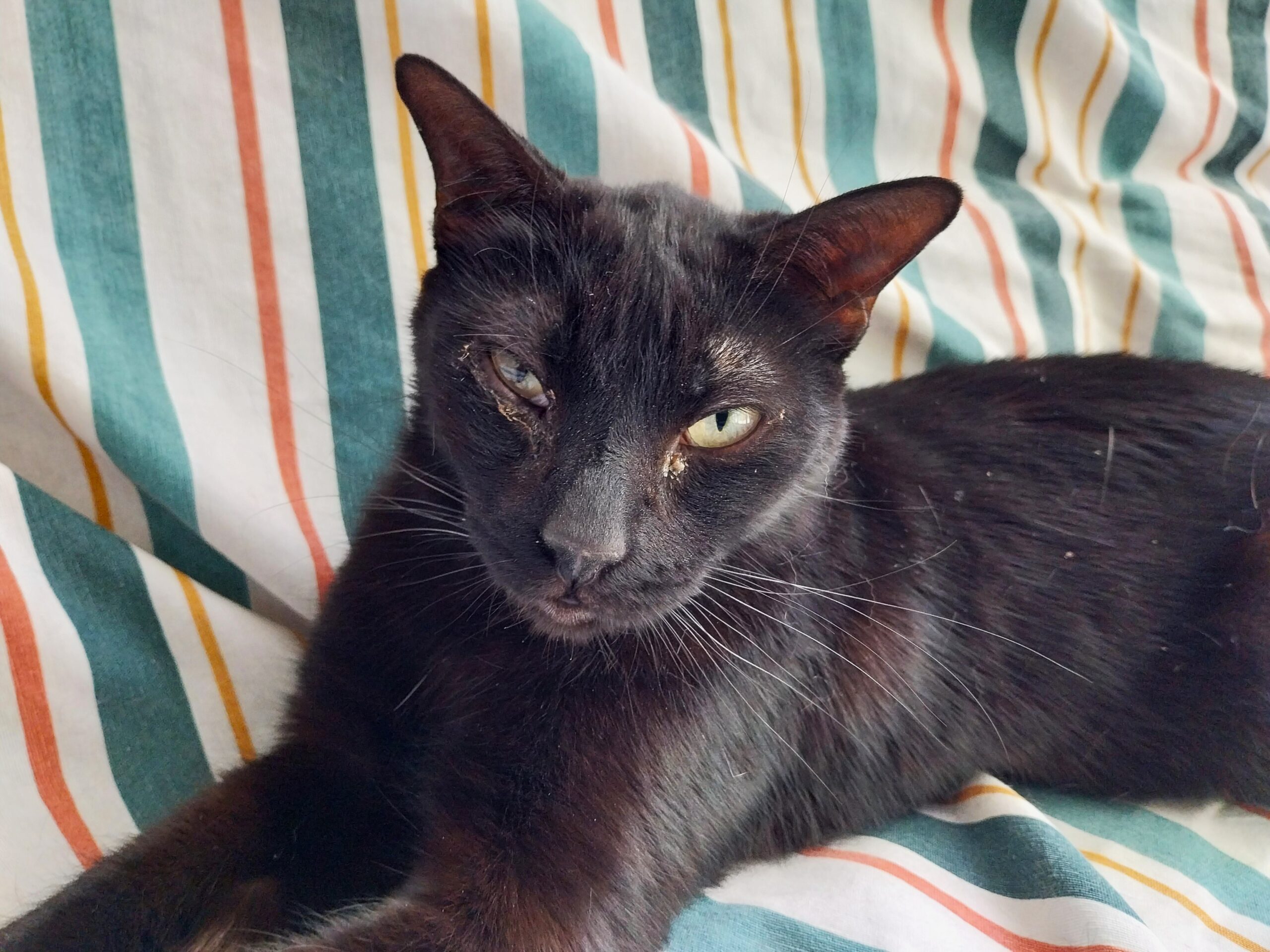 Como veis, soy un gato negro, y aún hay mucha gente que piensa que damos mala suerte, por eso me está costando encontrar una familia. Os prometo que, si me adoptáis, seré lo mejor que os ha podido pasar nunca.