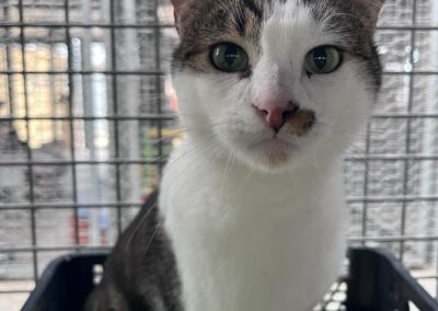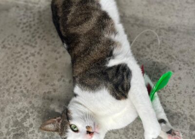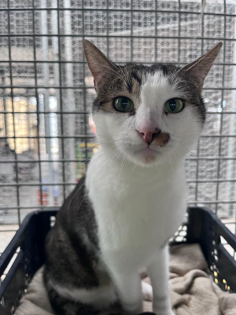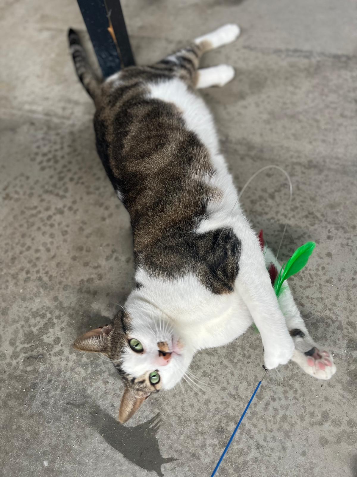 Soy un gatete muy bueno y mimosón. Me encanta rodear las piernas de los humanos en cuanto los veo acercarse. ¿Me dais una familia?